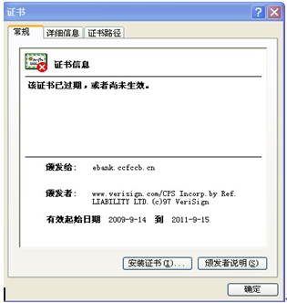 ?、谠贗E選項——內(nèi)容——證書——查詢中,看到如下消息,提示證書已經(jīng)過期或者尚未生效。